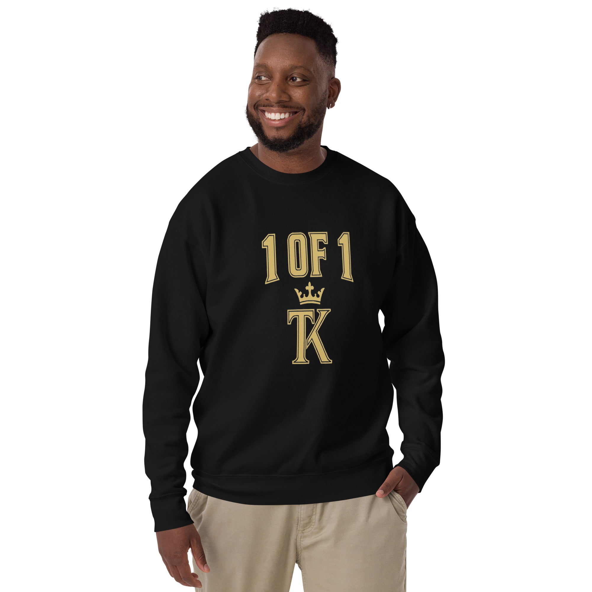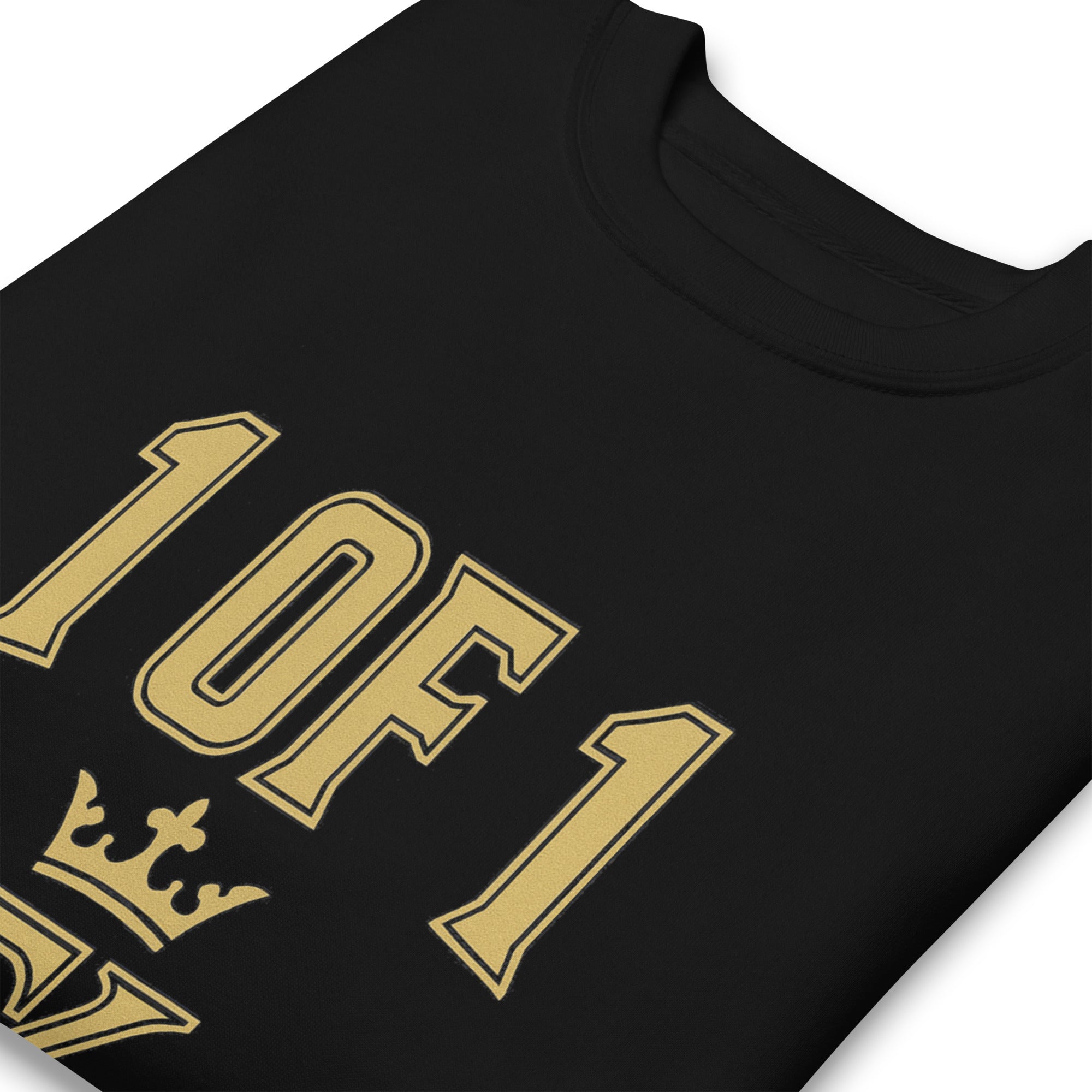 • Large varsity-style “1 OF 1” lettering